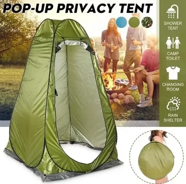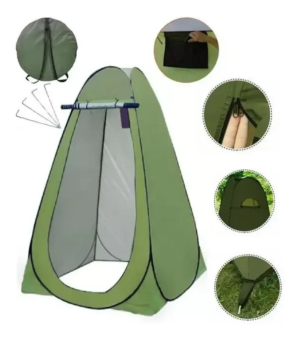 Descubre la Carpa Baño Vestidor Autoarmable, la solución perfecta para tus necesidades de privacidad al aire libre. Con unas dimensiones de 1.20 x 1.20 x 1.90 m, esta carpa es ideal para usar como inodoro o ducha en camping, festivales o excursiones. Su diseño autoarmable facilita el montaje, permitiéndote disfrutar de tu tiempo al aire libre sin complicaciones. Fabricada en resistente poliéster, ofrece una impermeabilidad de 500 mm, asegurando que estés protegido de la lluvia. Aunque no incluye inodoro, su capacidad máxima es para una persona, brindando un espacio cómodo y privado. Su atractivo color verde se integra perfectamente con la naturaleza. Además, cuenta con un IVA del 21% y no tiene impuesto interno, lo que la convierte en una opción accesible. ¡Haz de tus aventuras una experiencia más cómoda y privada con esta carpa de camping!