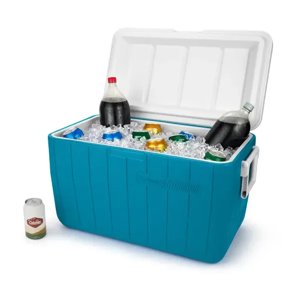 • Conserva el frío por 4 días. • Tapa de cierre hermético. • Bisagras plásticas reforzadas con tope. • Doble sentido de manijas para un transporte cómodo. • Capacidad para 63 latas. • Tapón de desagote. • Medidas: 63 x 34 x 37cm • Made in USA