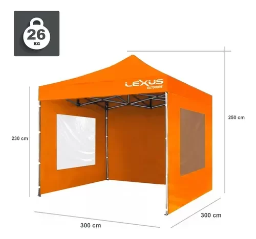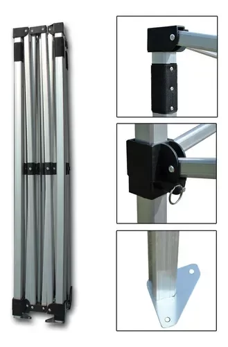 Este gazebo único en el mercado de excelente calidad y materiales, es plegable y está construido con una estructura de aluminio altamente resistente. Los elementos de unión y los ángulos han sido testeados con éxito, demostrando su efectividad y durabilidad ante las inclemencias climáticas. Ideal para el uso cotidiano. Cuenta con doble refuerzo de tela en todas las superficies de contacto, haciendo la tela más duradera y resistente.