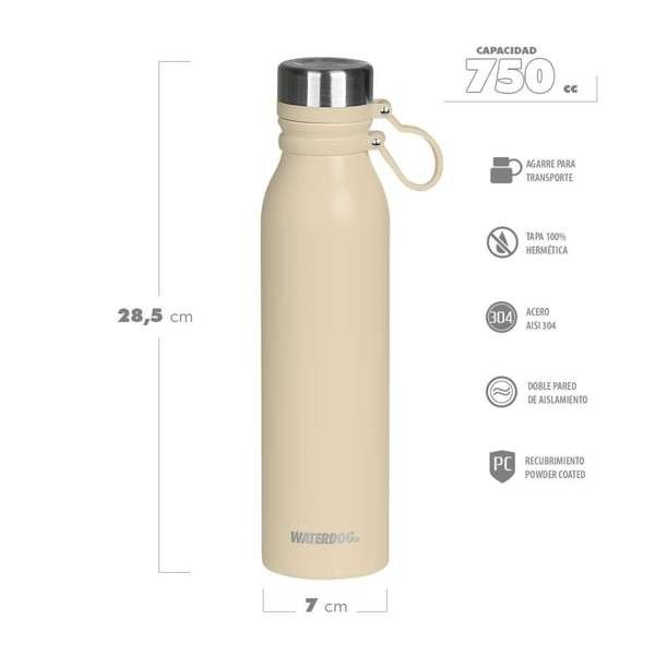 La botella se destaca por la resistencia y durabilidad del acero inoxidable AISI-304. Con capacidad 750ml y tapa hermética a rosca ayuda a evitar derrames, lo que la hace ideal para llevar tu bebida favorita mientras estás en movimiento. Esta botella es una inversión a largo plazo y alternativa ecológica que contribuye a la reducción de residuos plásticos y al cuidado del medio ambiente. Ya sea durante una carrera matutina, una sesión de gimnasio o una caminata en la naturaleza lleva tu bebida en la botella deportiva Waterdog