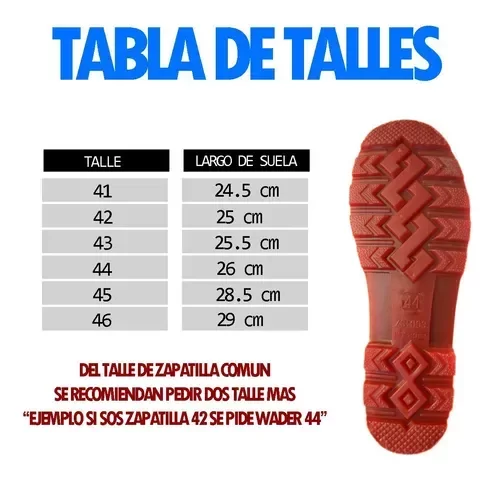 SE RECOMIENDA PEDIR 2 TALLES MAS DE LO QUE SE CALZA EN ZAPATILLAS, ES DECIR SI CALZAS 42, PEDIR UN 44.